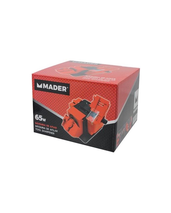 Mquina de afilar elctrica de 65 W. R.P.M.: 2.950. Para el afilado de todo tipo de herramientas de corte, brocas, formones, gubias, cuchillas de cepillo de carpintero, tijeras, cuchillos, etc.Embalaje: Altura 15.00 cm Anchura 22.00 cm Longitud 20.00 cm Peso Bruto 2.08 kg Peso Neto 1.63 kg