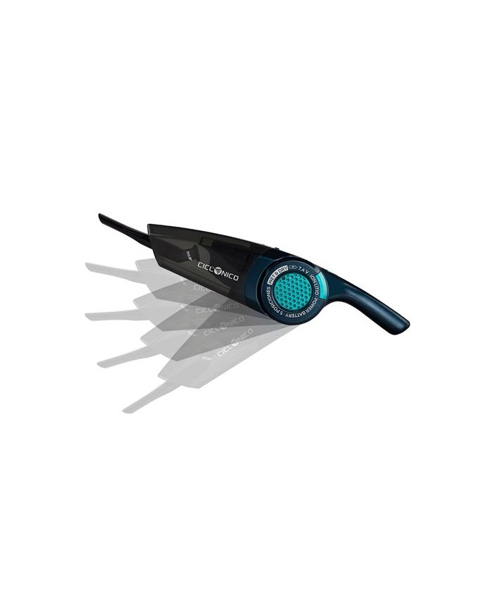 2 en 1: aspira slidos y lquidos. Batera de 7,2 V ion litio 2 x 2200 mAh. Mango con ngulo de inclinacin variable de 5 posiciones. Sistema de aspiracin ciclnico. Depsito de 400ml fcil de vaciar. Animal care. Apta para aspirar pelos de mascotas. Autonoma de 20 minutos. Sin bolsa. Recarga en 5-7 horas. Filtro de fcil limpieza. Base cargadora con soporte de accesorios para disponer del aspirado listo siempre que lo necesites. Diseo ergonmico y verstil. Indicador de carga. 3 accesorios incluidos: cepillo para tapicera, esquinas y accesorio para lquidos. Adaptador de corriente de 230 V ~ 50 Hz.