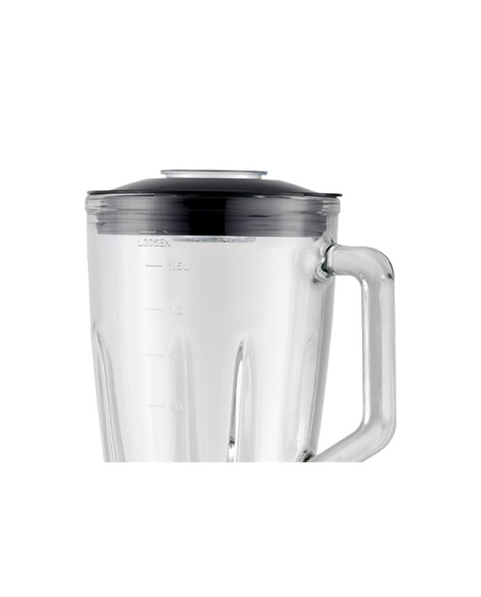 Potencia 1500 W. Cuerpo de acero inoxidable Cuchilla de acero inoxidable. Vaso de cristal de 1,5 litros Motor de alta eficiencia y bajo ruido de 2 velocidades y funcin pulse. Funcin pica hielo. Diseo moderno con luz led azul. Tapa con medida. Bloqueo de seguridad Totalmente desmontable, para facilitar su limpieza. Dimensiones: 19X18X39cm Peso: 3.1Kgs