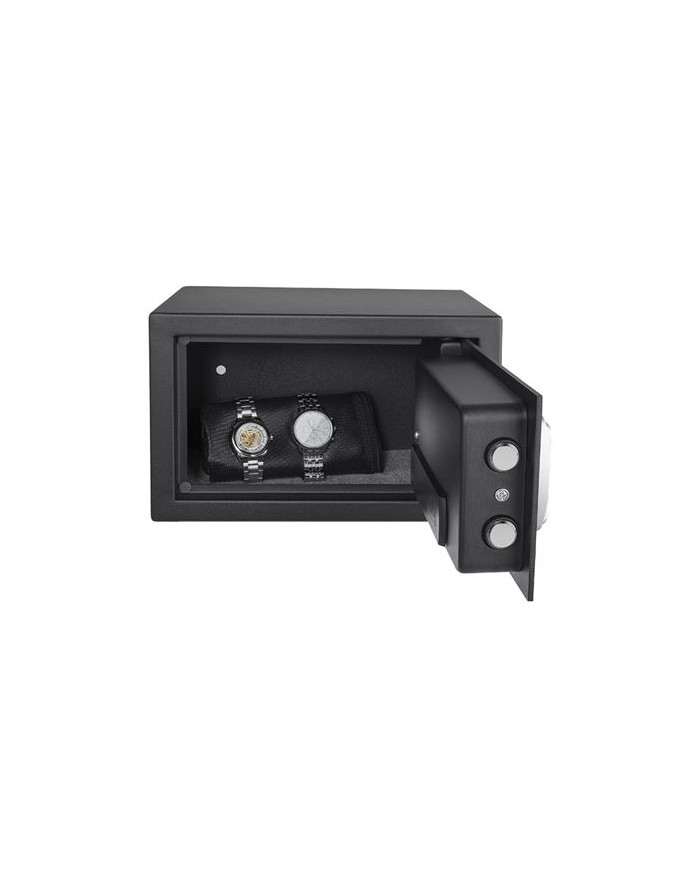 Estn diseadas para ofrecer un nivel alto de seguridad mediante el uso de materiales resistentes y sistemas de cierre avanzados, como combinaciones numricas, cerraduras electrnicas y cerraduras mecnicas. Usos comunes: proteccin de dinero y joyas. Custodia de documentos importantes, medios digitales, objetos sentimentales entre otros. Acabado resistente a rayones. Interior completamente alfombrado. 3 luces indicadoras (verde, roja y amarilla). Indican abierto, batera baja y advertencia. Bisagras ocultas como proteccin adicional contra intentos de robo. Equipada con 2 pernos de bloqueo de acero slido de accin rpida de 20 mm de dimetro. Abre y cierra con un cdigo de 3 a 8 dgitos. Incluye llave de emergencia. P