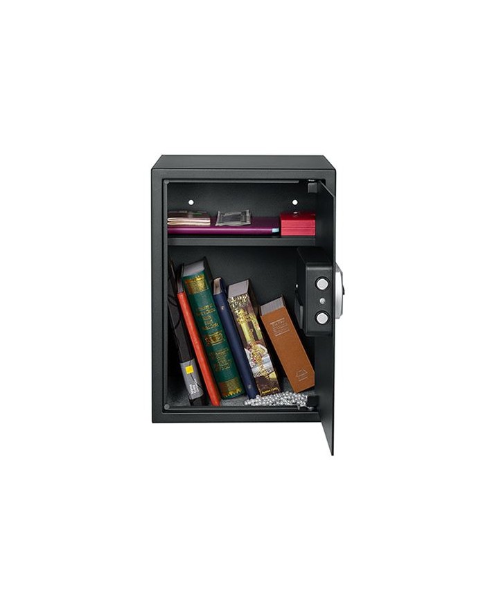 Estn diseadas para ofrecer un nivel alto de seguridad mediante el uso de materiales resistentes y sistemas de cierre avanzados, como combinaciones numricas, cerraduras electrnicas y cerraduras mecnicas. Usos comunes: proteccin de dinero y joyas. Custodia de documentos importantes, medios digitales, objetos sentimentales entre otros. Acabado resistente a rayones. Interior completamente alfombrado. 3 luces indicadoras (verde, roja y amarilla). Indican abierto, batera baja y advertencia. Bisagras ocultas como proteccin adicional contra intentos de robo. Equipada con 2 pernos de bloqueo de acero slido de accin rpida de 20 mm de dimetro. Abre y cierra con un cdigo de 3 a 8 dgitos. Incluye llave de emergencia. P
