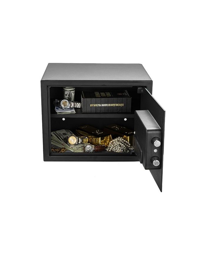 Estn diseadas para ofrecer un nivel alto de seguridad mediante el uso de materiales resistentes y sistemas de cierre avanzados, como combinaciones numricas, cerraduras electrnicas, cerraduras mecnicas o biomtricas. Usos comunes: proteccin de dinero y joyas. Custodia de documentos importantes, medios digitales, objetos sentimentales entre otros. Acabado resistente a rayones. Cierres slidos motorizados. Reforzado con dos ranuras antipalanca. Interior completamente alfombrado, luz LED integrada Estructura resistente a palancas, cortada a lser, soldada sin costuras. Sensor ptico de huellas dactilares de 500 dpi Sonido indicador si la puerta se deja desbloqueada por ms de 1 minuto Lector de huellas dactilares biomtr
