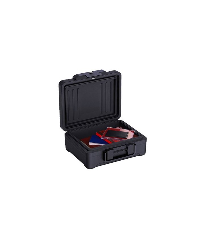 La FireBox S1 de CROMAD es una caja fuerte porttil, ideal para proteger documentos importantes, pasaportes, contratos o dispositivos pequeos frente a incendios y daos por agua. Diseada para hogares, oficinas o vehculos, esta solucin compacta ofrece proteccin profesional con cierre de llave doble y asas ergonmicas.Especificaciones tcnicas Color: Negro Material: Polmero resistente a altas temperaturas + refuerzos internos Cerradura: Llave (incluye 2 llaves) Proteccin contra fuego: 30 minutos a temperaturas extremas (conforme a UL 72 modificado) Proteccin contra agua: IPX7 sumergible hasta 20 cm durante 72 horas Interior: Correas interiores integradas para asegurar documentos Capacidad: Documentos A5 / Pasaportes