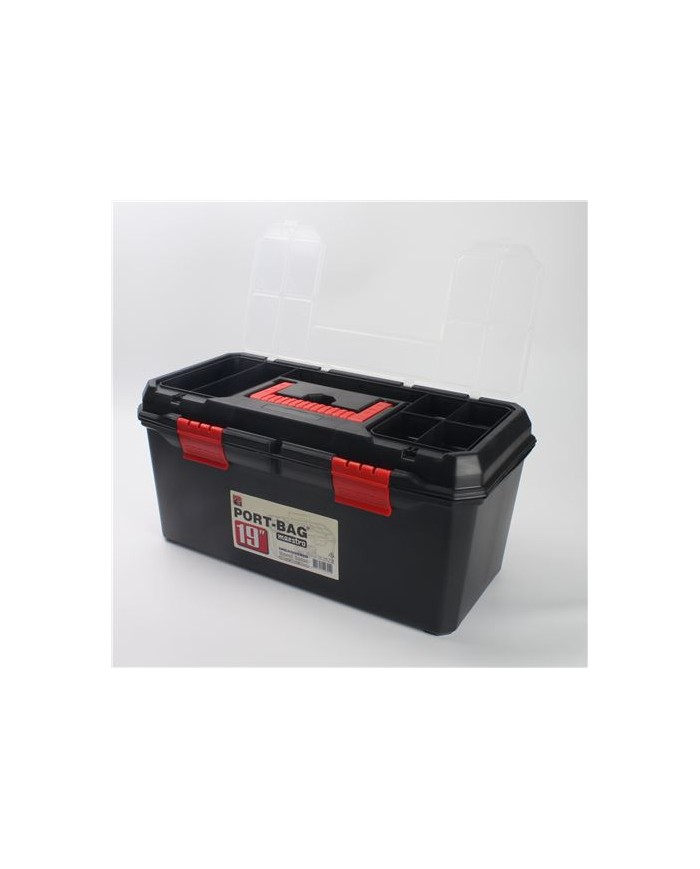 Caja multiusos con bandeja extrable, ideal para almacenar herramientas manuales con organizador para piezas pequeas y accesorios en la tapa.Embalaje: Altura 22.50 cm Anchura 48.00 cm Longitud 24.00 cm Peso Bruto 0.94 kg Peso Neto 0.94 kg