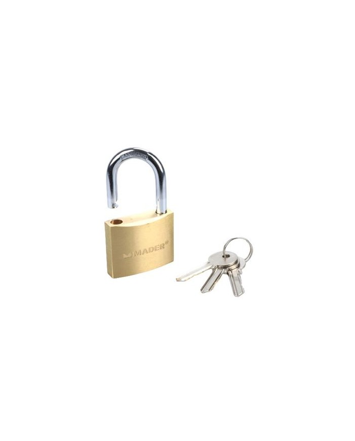 Candado con llave de doble cierre automtico. Incluye 3 llaves para tener un recambio. Est compuesta por un asa de acero cromada y de un cuerpo de latn de color dorado