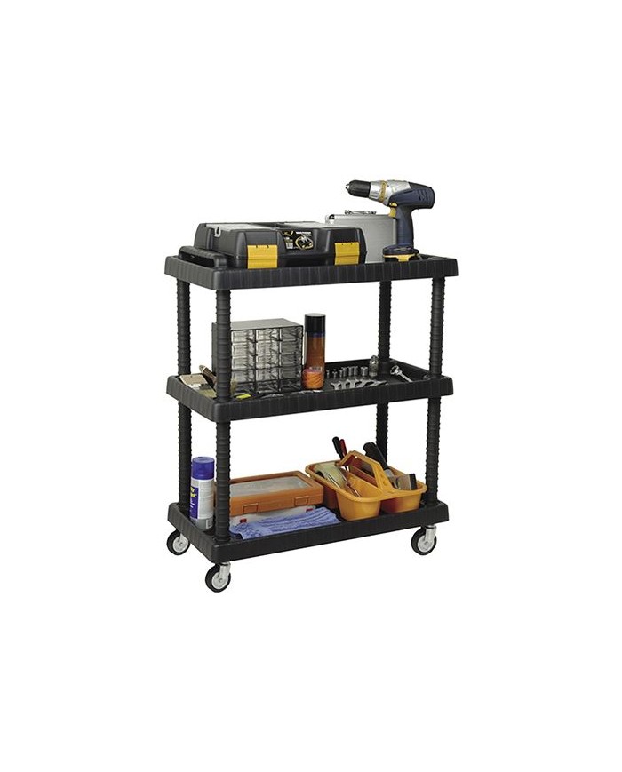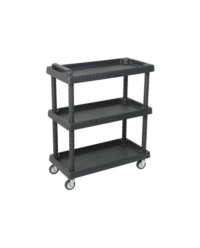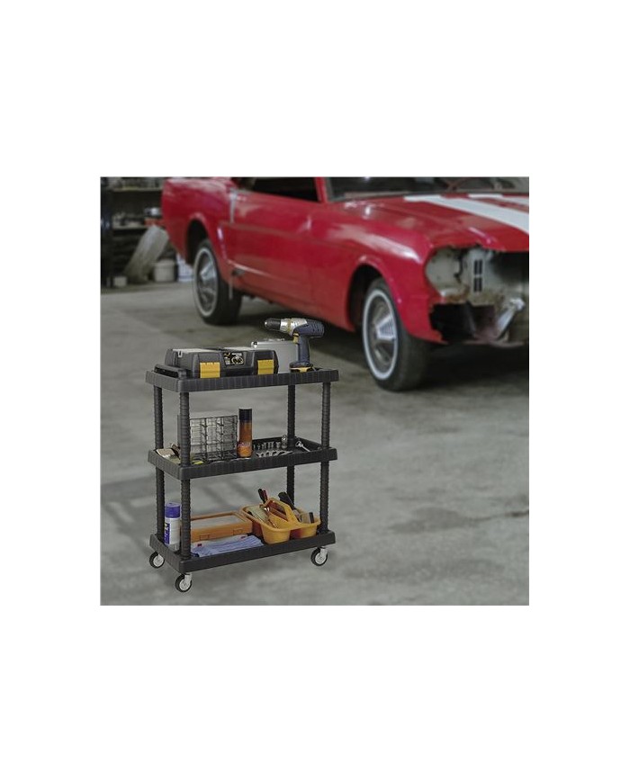 Carro multiuso fabricado en polipropileno resistente Equipado con 4 ruedas de acero, ideal para uso profesional o domstico intensivo Estantes regulables en altura, adaptables segn el tipo de herramientas o materiales Capacidad de carga media-alta, ideal para talleres, almacenes, ferreteras o entornos industriales Diseo robusto, ergonmico y fcil de limpiar Medidas: - Largo: 750 mm - Profundidad: 375 mm - Altura: 920 mm