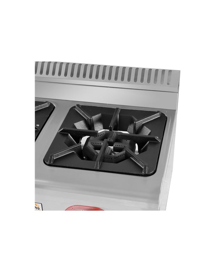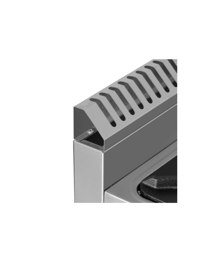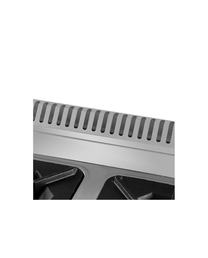 La CHEF PRO CF0128 es una cocina a gas profesional de tres quemadores, diseada para cocinas de alto rendimiento en restaurantes, hoteles y servicios de catering. Su robusta construccin en acero inoxidable y fogones de hierro fundido garantizan durabilidad, potencia y seguridad en cada preparacin. Gracias a sus tres quemadores de gran tamao (300 300 mm), permite cocinar varios platos simultneamente, optimizando tiempos de trabajo en momentos de mxima demanda. Equipada con proteccin contra apagado de llama (flameout protection), ofrece mxima seguridad en el uso intensivo. Su diseo compacto de sobremesa y sus materiales de alta calidad aseguran un mantenimiento sencillo y un rendimiento fiable a largo plazo. 3 quemadores de alta potencia de 75,0