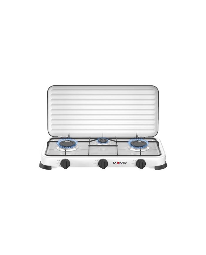 Especificaciones tcnicas:Encendido: Manual Nmero de fuegos: 3 Potencia trmica: 2 x 2,2 kW + 1 x 1,0 kW (393 g/h)Quemador: Aluminio fundido a presin con tapa de fuego esmaltada extraible para fcil limpieza.Soporte para cacerolas: Barras de acero 4 x 8 mm Patas: Goma antideslizante para mayor estabilidad y proteccin Tapa protectora: Plegable, con recubrimiento de goma, para mayor higiene y seguridad Dimensiones: 57,7 x 27,8 x 5,3 cmCaractersticas destacadas:Tres fuegos que ofrecen mayor versatilidad al cocinar varios platos a la vezDiseo ideal para camping, caravanas, exteriores o como cocina auxiliar en el hogar
