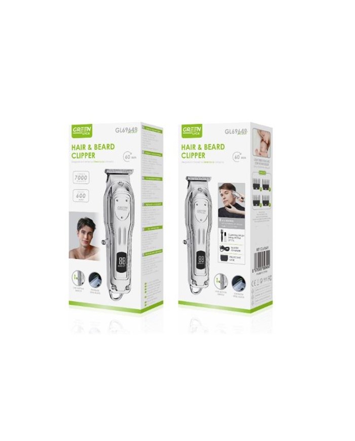 Diseo metlico premium, elegante y ergonmico. Cuchillas de acero inoxidable de alta precisin y durabilidad. Pantalla LED digital que muestra el nivel de batera y estado de funcionamiento. Motor de alta velocidad de 7000 rpm para un corte potente y uniforme. Batera de litio recargable de larga duracin (600 mAh). Tiempo de carga: 60 minutos aproximadamente. Autonoma de uso: hasta 60 minutos continuos. Uso inalmbrico o con cable, adaptable a cualquier entorno. Diseo silencioso con baja vibracin. 3 peines gua de diferentes medidas. Cepillo de limpieza. Aceite lubricante. Cable de carga USB. Manual de usuario.