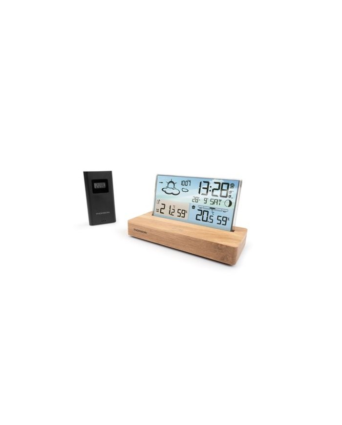 ESTACION METEOROLOGICA CON RELOJ DESPERTADOR MADERA/BLANCO THOMSON