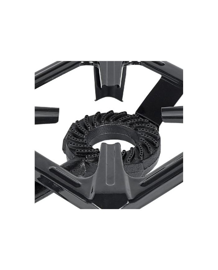 Quemador de alta calidad de hierro fundido. 1 fuego de alta capacidad Llave de regulacin de gas. Potencia: 7KW Dimensiones: 40x40x15cm Peso: 3.1Kg