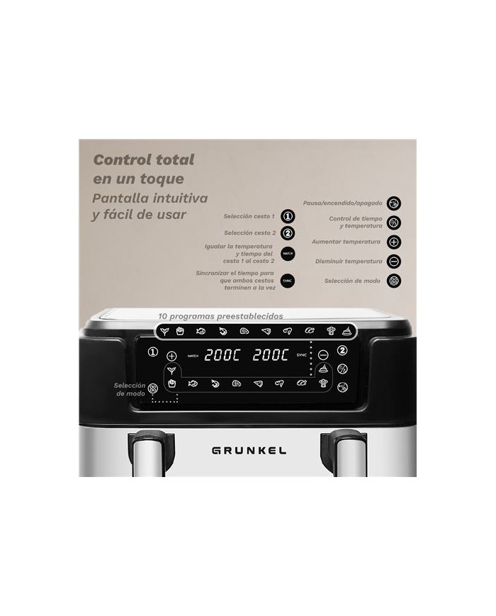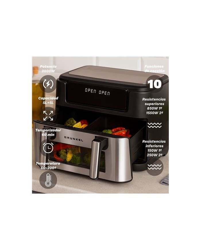 FREIDORA DE AIRE 10 LITROS 2800W CUBETOS FLEXIBLES GRUNKEL