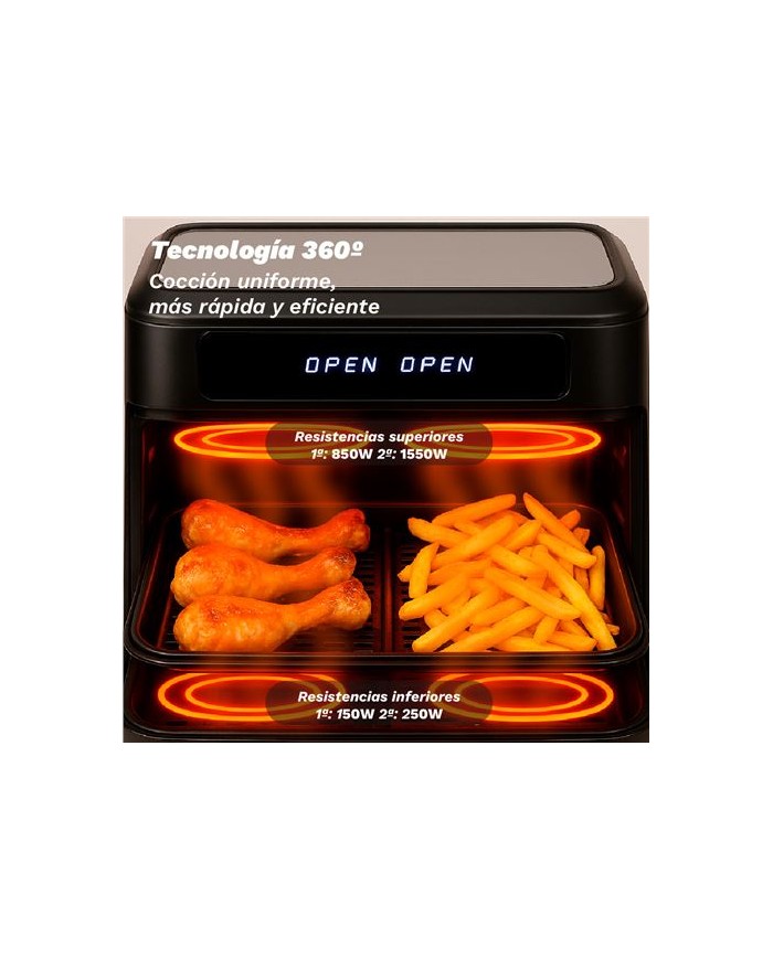 Doble resistencia Capacidad adaptable a 10 litros o 5/5 o 7/3 Potencia maxima 2800w 10 programas Pantalla digital