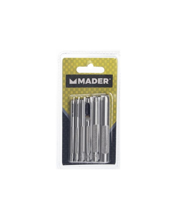Juego de 6 sacabocados huecos para la realizacin de agujeros en cuero, plstico, goma y vinilo Medidas 3-4-5-6-8y 10m. Fabricado en acero al carbonoEmbalaje: Altura 22.00 cm Anchura 9.00 cm Longitud 3.00 cm Peso Bruto 0.26 kg Peso Neto 0.26 kg