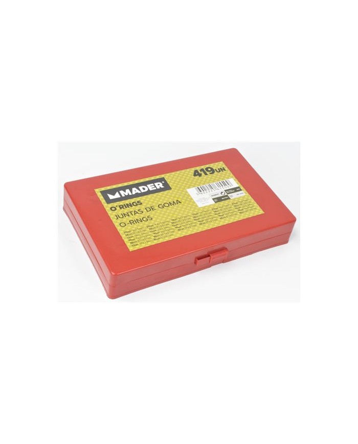 Conjunto de 419 piezas para la realizacin de los trabajos de taller de una manera ms sencilla y rpida. Se trata de un kit de 419 piezas debindose utilizar en cada caso aquella que se adapte mejor a las necesidades. Medidas: 3x1.5, 4x2, 5x27x1.5, 10x1.5, 13x1.5, 10x2.5, 11x2.5, 13x2.5, 14x2.5, 16x2.5, 18x2.5, 19x2.5, 21x2.5, 22x2.5, 18x3.5, 20x3.5, 22x3.5, 23.5x3.5, 25x3.5, 26.5x3.5, 28x3.5, 30x3.5, 31x3.5, 33x3.5, 34.5x3.5, 36x3.5, 38x3.5, 41x3.5, 44x3.5, 47x3.5, 50x3.5 mmEmbalaje: Altura 25.00 cm Anchura 15.20 cm Longitud 4.00 cm Peso Bruto 0.63 kg Peso Neto 0.60 kg