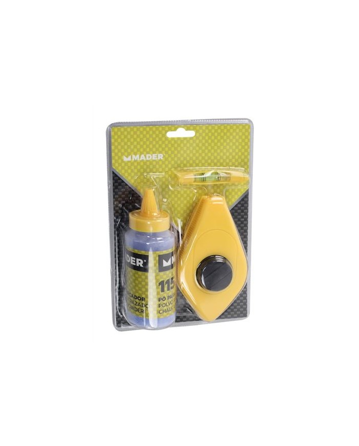 Blster prctico para uso como marcador de lneas en construccin, albailera, etc. El bote de plstico tiene una lnea de cuerda de 30 metros, con anillo metlico para sujetar y con un rebobinador de cuerda rpido. Tiene un tapn a rosca en el orificio para carga de azulete, muy cmodo. El bote de azulete es de 115 gramos; adems, hay un mini nivel para conseguir nivelaciones de la cuerda en altura o longitud. Eventualmente se puede usar la cuerda y el bote como plomada.Embalaje: Altura 24.00 cm Anchura 16.00 cm Longitud 6.00 cm Peso Bruto 0.29 kg Peso Neto 0.29 kg