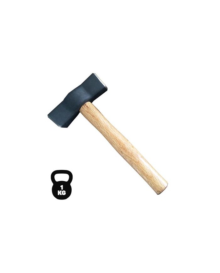 Cabeza en acero al carbono forjado de 1 Kg. Superficie de trabajo templada. Mango de madera. Mango con forma ergonmica.