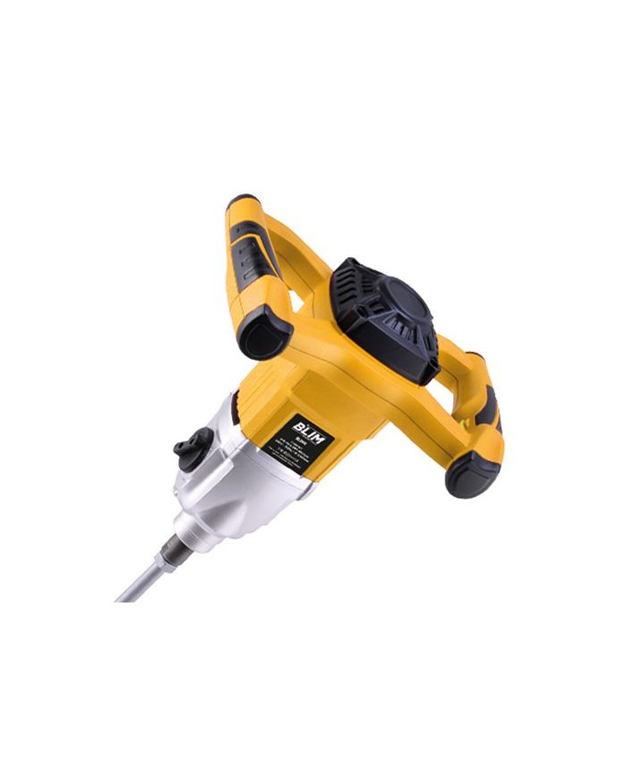 Mezclador de pintura/mortero elctrico con un fuerte motor de 1.500 W de potencia y carcasa de engranaje de aluminio robusta y duradera. Cuenta con sistema de engranaje de 2 velocidades (240-500 & 380-850 rpm) para un par de giro elevado y potencia mixta elevada (que te permitir ajustar la mquina a la velocidad ptima segn la consistencia de la mezcla), arranque suave para un funcionamiento seguro y agradable, asa ergonmica y un cable de goma largo y robusto. Para un cmodo funcionamiento permanente, el equipo dispone de un interruptor bloqueable, as como una recepcin de eje en el cuello de engranaje. Se pueden hacer funcionar todas las herramientas convencionales de agitacin con rosca de M14. Incluye un agitador de mortero de 120 mm de dimetro.