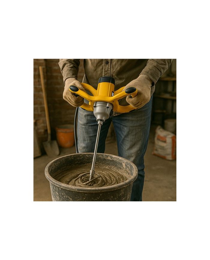 Mezclador de pintura/mortero elctrico con un fuerte motor de 1.800 W de potencia y carcasa de engranaje de aluminio robusta y duradera. Cuenta con sistema de engranaje de 2 velocidades (180-400 & 300-700 rpm) para un par de giro elevado y potencia mixta elevada (que te permitir ajustar la mquina a la velocidad ptima segn la consistencia de la mezcla), arranque suave para un funcionamiento seguro y agradable, asa ergonmica y un cable de goma largo y robusto. Para un cmodo funcionamiento permanente, el equipo dispone de un interruptor bloqueable, as como una recepcin de eje en el cuello de engranaje. Se pueden hacer funcionar todas las herramientas convencionales de agitacin con rosca de M14. Incluye un agitador de mortero de 140 mm de dimetro.
