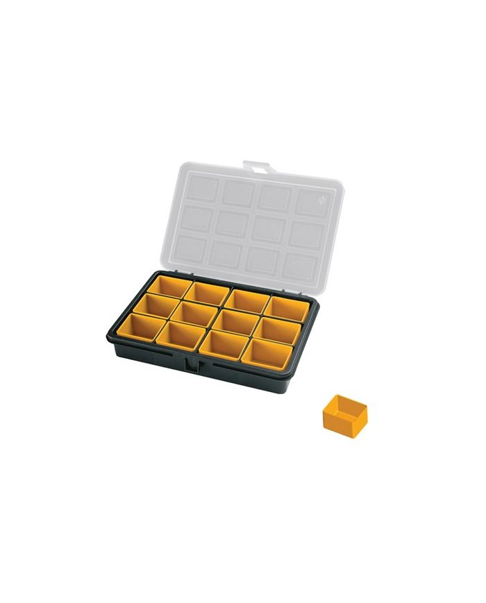 Este verstil organizador cuenta con 12 compartimentos independientes y extrables, perfectos para clasificar piezas pequeas como tornillos, pernos, componentes electrnicos o abalorios. Su diseo compacto (180 x 128 x 32 mm) permite transportarlo fcilmente o almacenarlo en cajones, mochilas o estanteras. 12 cajitas desmontables para mayor flexibilidad Tapa transparente con cierre seguro Ideal para trabajos tcnicos, manualidades o bricolaje