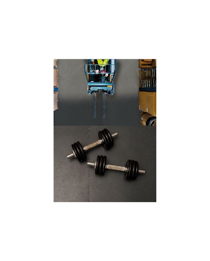 Baldosa de PVC de 600 x 600 mm y 7 mm de grosor, equipada con sistema de ganchos de unin para un montaje rpido y sin adhesivos. Su superficie con textura de piel de naranja proporciona un acabado antideslizante, ideal para zonas de alto trnsito o uso industrial. Para cubrir 1 m se requieren 2,8 baldosas. Acabado antideslizante tipo piel de naranja Sistema de ganchos para unin firme Ideal para fbricas, garajes, almacenes, eventos, etc. Instalacin rpida, sin obras