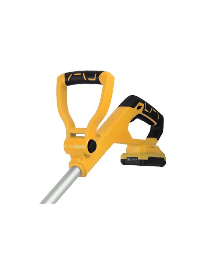 Motor: sin carbones. Velocidad sin carga: 9.000rpmAncho de corte: 300 mm . Dimetro del cortador de nailon: 1,65 mm . ngulo de corte regulable de 0 a 90.Asa auxiliar regulable. Eje telescpico de aluminio. No contiene batera ni cargador.
