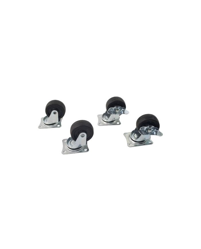" Juego de 4 ruedas giratorias para carros con frenos. " Ruedas con rodamientos de bolas. " Capacidad de carga mxima 35 kg por cada rueda.Embalaje: Altura 21.00 cm Anchura 14.00 cm Longitud 7.00 cm Peso Bruto 0.64 kg Peso Neto 0.60 kg