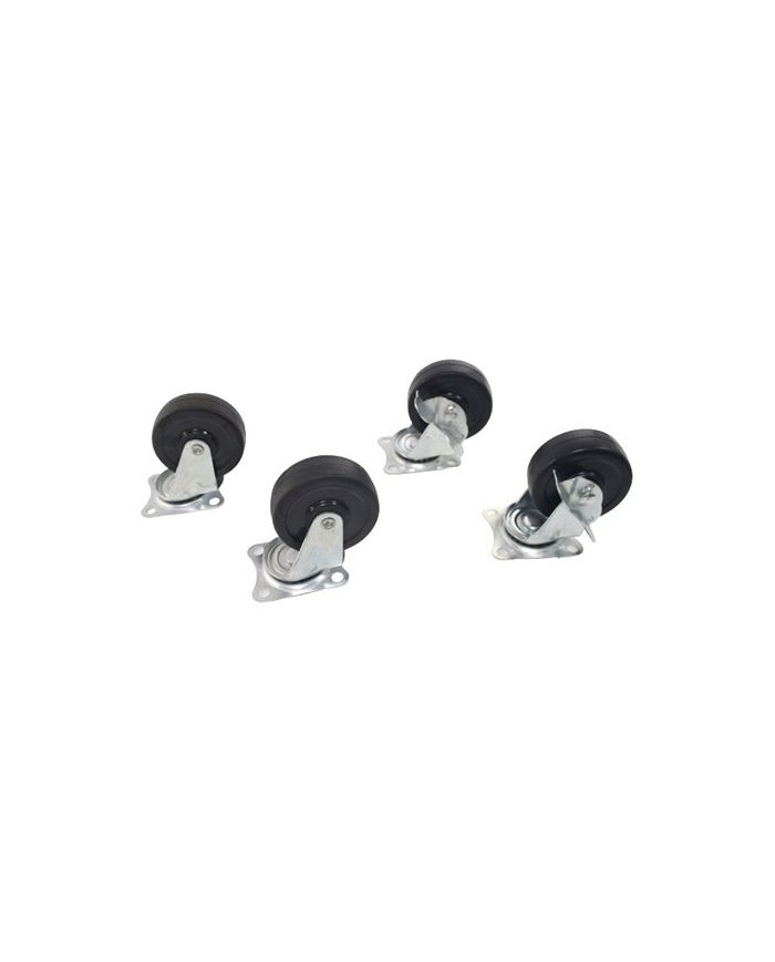" Juego de 4 ruedas giratorias para carros con frenos. " Ruedas con rodamientos de bolas. " Capacidad de carga mxima 50 kg por cada rueda.Embalaje: Altura 23.00 cm Anchura 14.00 cm Longitud 10.00 cm Peso Bruto 1.50 kg Peso Neto 1.45 kg