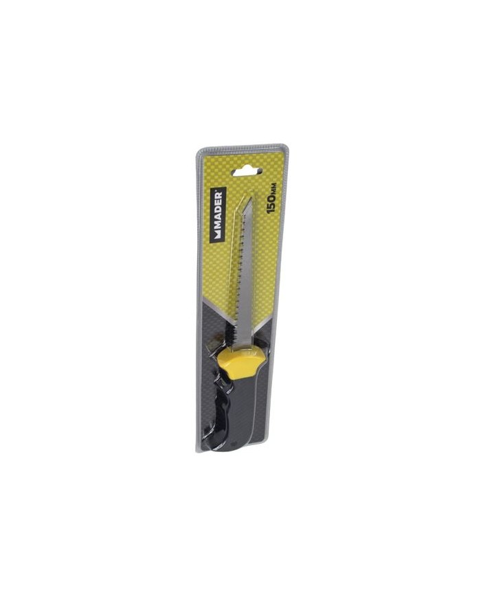 Serrucho manual. Herramienta de corte para yeso, contrachapado e incluso races de rboles. Hoja de acero alcarbono tratado trmicamente y templado para obtener una gran durabilidad. Cuchilla extremadamente rgida con punta afilada. Mango ergonmico para mayor seguridad y comodidad.Embalaje: Altura 37.00 cm Anchura 9.00 cm Longitud 4.00 cm Peso Bruto 0.70 kg Peso Neto 0.65 kg