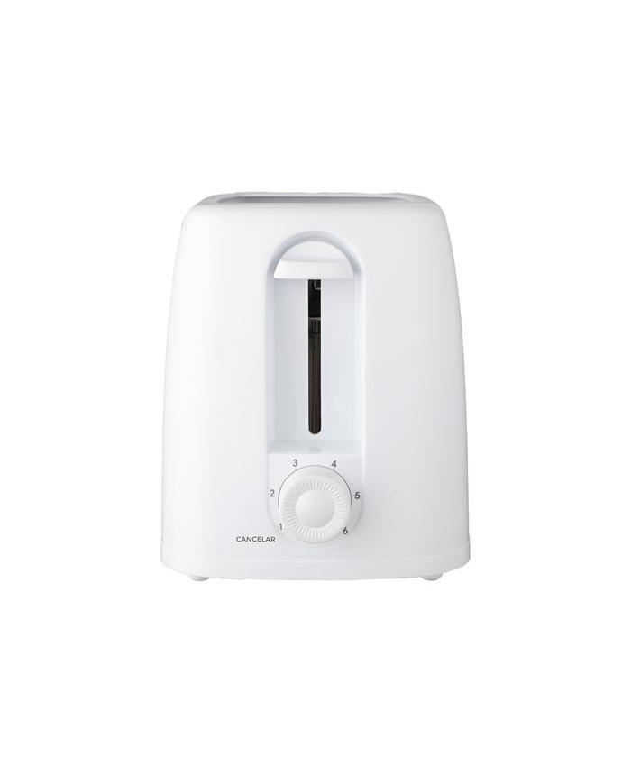 [ Especificaciones tcnicas ] Voltaje: 220240 V Frecuencia: 5060 HzPotencia: 650 WCapacidad: 2 rebanadas (ranura corta de 100 x 100 mm)Tamao del artculo: 250 x 145 x 168 mmMaterial del cuerpo: Plstico resistenteFunciones:Control de tostado con 6 nivelesBotn de cancelacin (CANCEL)Control: Perilla integrada con selector de nivelesBandeja recogemigas: Extrable para limpieza sencillaAlmacenamiento del cable: Compartimento integrado en la base[ Caractersticas destacadas ] Diseo compacto, minimalista y elegante en color blancoIdeal para cocinas pequeas, oficinas o espac