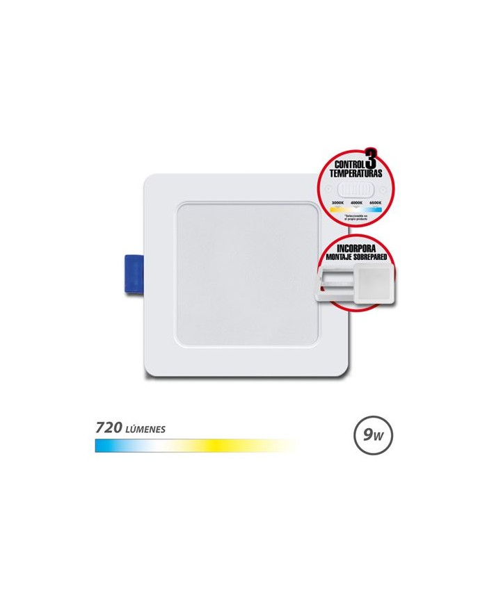 DOWNLIGHT CUADRADO 9W | 720LM SELECTOR 3 TEMPERATURAS + SOBREPARED ELBAT