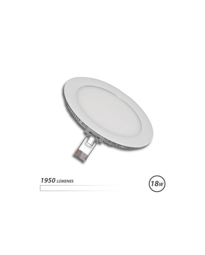 Potencia: 18W Lumenes: 1950 Tipo de Luz: 4000K. Luz Blanca Diametro: 210 mm Dimetro de corte: 20cms Marco color blanco Angulo: 160 30.000 horas de vida. 15.000 Encendidos. Voltaje: 85V - 265V