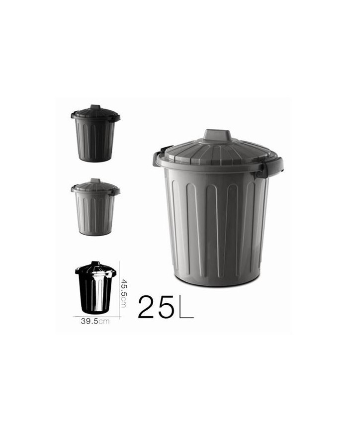 CUBO DE BASURA CON TAPA GRIS/NEGRO 25 LITROS OSKAR