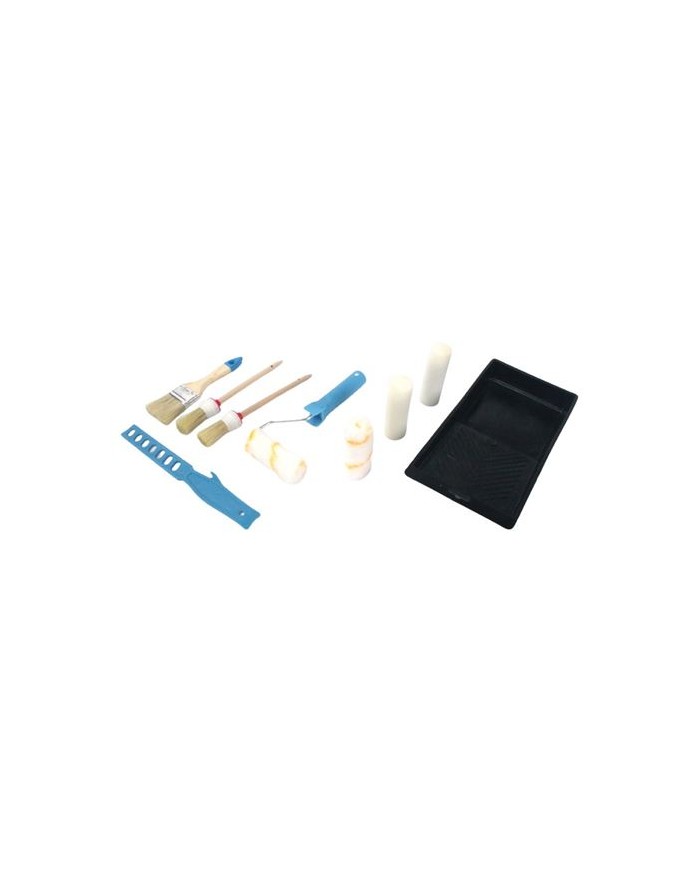 Contiene: 2x Rodillos Acrlicos, 100mm 2x Rodillos Esponja, 100mm 1x Brocha, 50mm 2x Brocha Redonda 1x Mango 1x Mezclador 1x Bandeja, 100mm