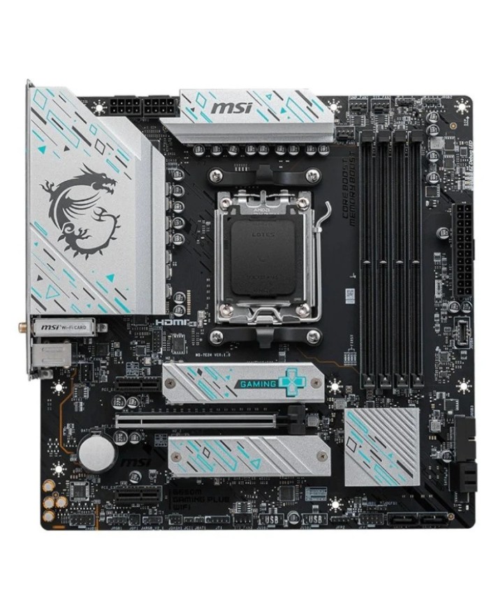 B650M GAMING PLUS WIFI está diseñado con toneladas de conectividad, herramientas flexibles y una conveniente solución Wi-Fi con versión de memoria DDR5 para jugadores que lo quieren todo.