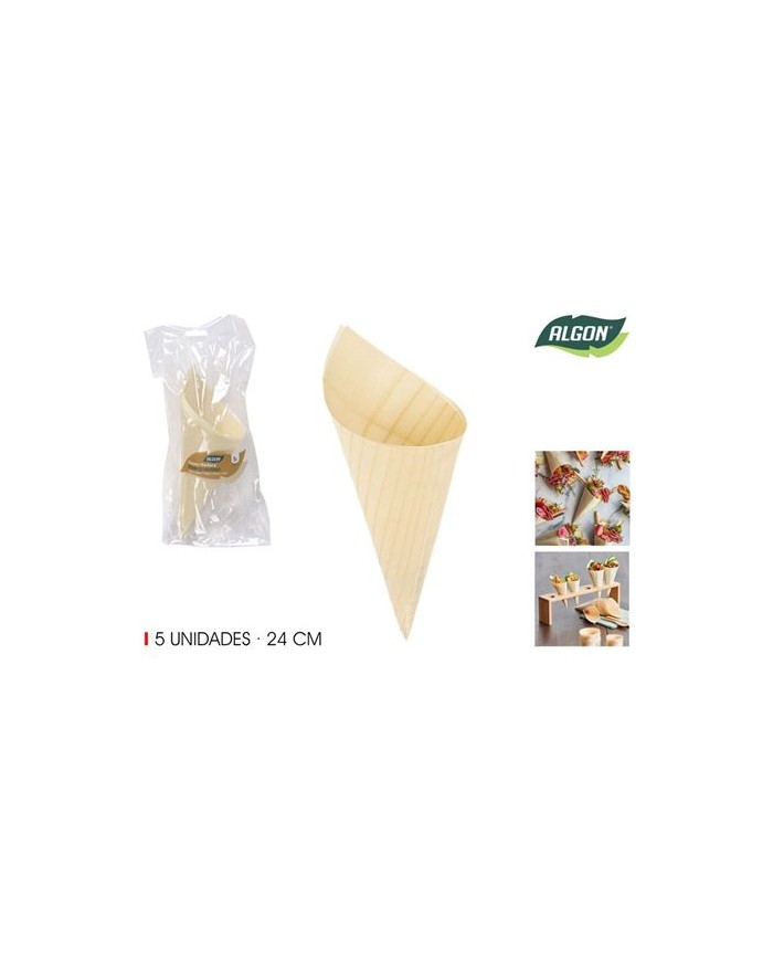 PACK 5 CONOS MADERA APERITIVOS 24CM ALGON