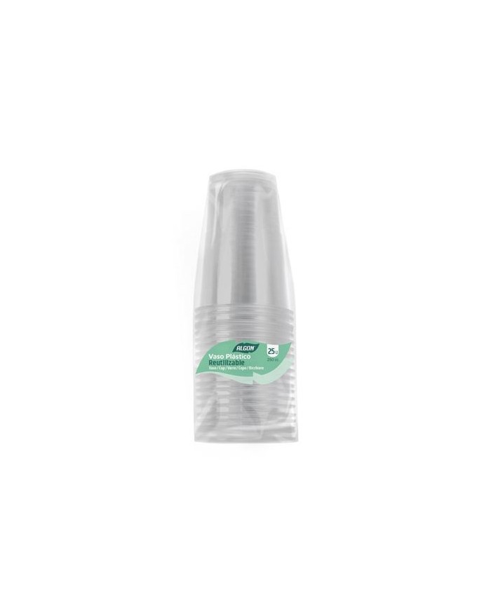 PACK 25 VASOS PLASTICOS TRANSPARENTE 250CC ALGON