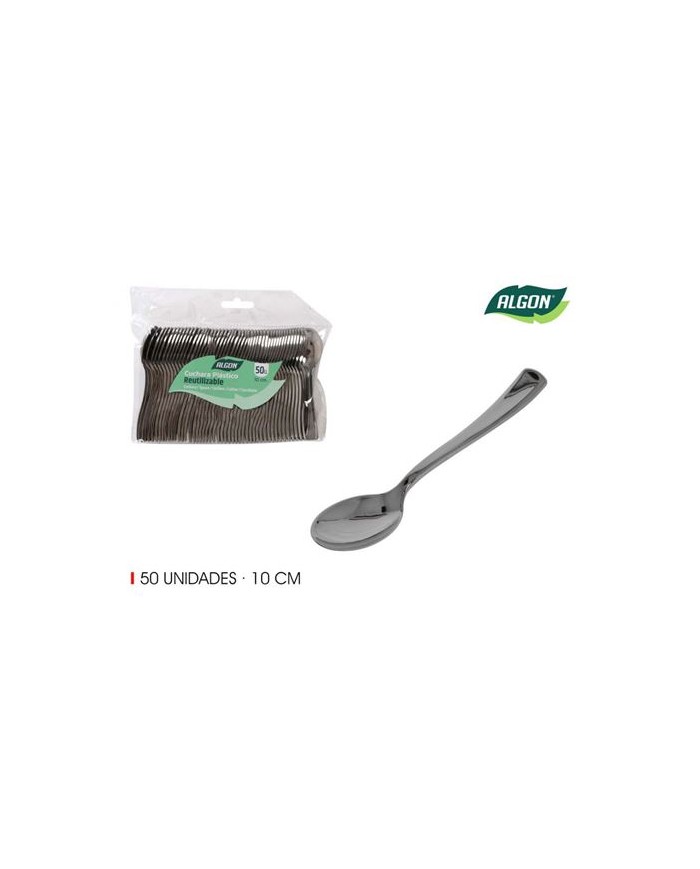 SET 50 CUCHARA 10CM PLASTICO REUTILIZABLE PLATA ALGON