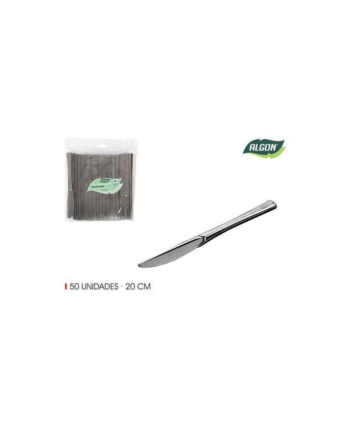 SET 50 CUCHILLOS 20CM PLASTICO REUTILIZABLE PLATA ALGON
