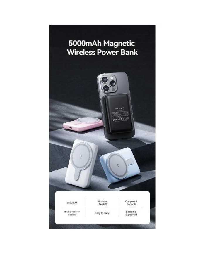 Vention PowerBank 5000mAh Magnético Inalámbrico (USB-C+C+Inalámbrico) 20W Display Indicador Luminoso