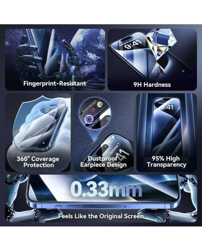 Protector de pantalla de vidrio templado HD para iPhone con herramienta de instalación sin polvo
