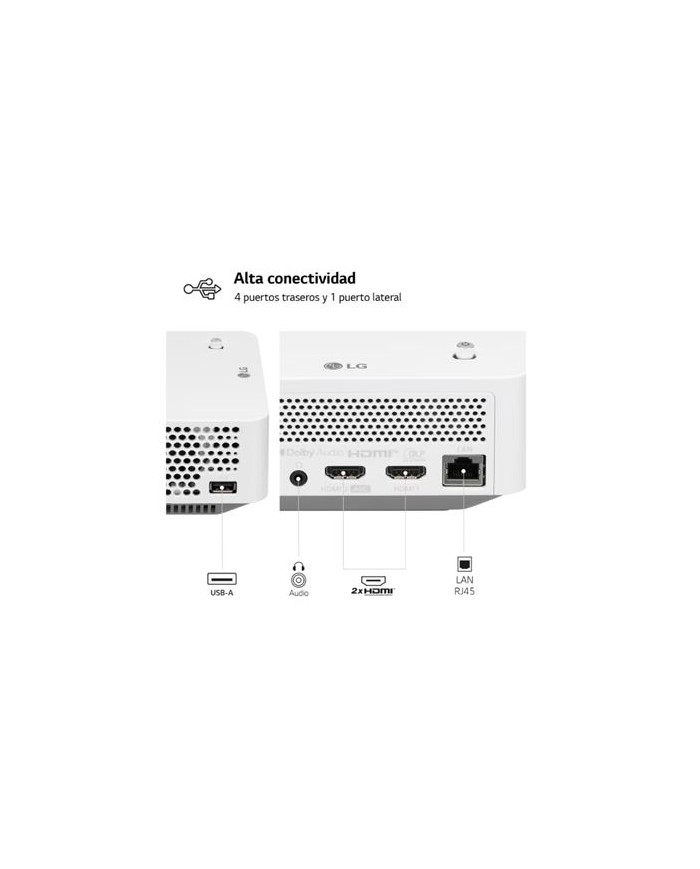 •Relaciones de aspecto compatibles: 4:3, 16:9 •Proyector inteligente: Si •Compatibilidad de tamaño de pantalla: (30 - 120") •Brillo de proyector: 450 lúmenes ANSI •Tecnología de proyección: DLP •Resolución original del proyector: 1080p (1920x1080) •Tipo de fuente luminosa: LED •Enfoque: Manual •Capacidad de zoom: Si •Relación de alcance: 1.2 •Full HD: Si •3D: No •Versión HDMI: 2.0 •Cantidad de puertos USB 2.0: 2 •Cantidad de puertos USB 2.0 tipo A: 2 •Tipo de serie de interfaz: RJ-45 •Salida de audio para PC: Si •Número de puertos HDMI: 2 •Puerto DVI: No •Smart TV: Si •Ethernet: Si •Ethernet LAN (RJ-45) cantidad de puertos: 1 •Bluetooth: Si •Alto Rango Dinámico (HDR): Si •AirPlay: Si<