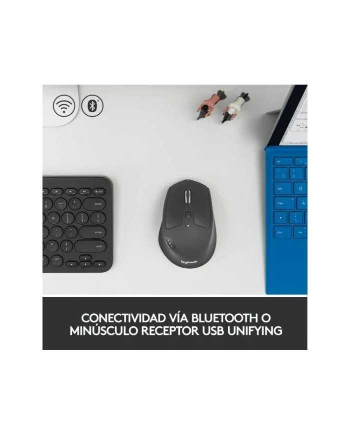 - Conectividad Doble: conecta el ratón usando Bluetooth o el receptor Unifying de Logitech que te permite conectar hasta 6 periféricos Logitech compatibles con solo un receptor USB.