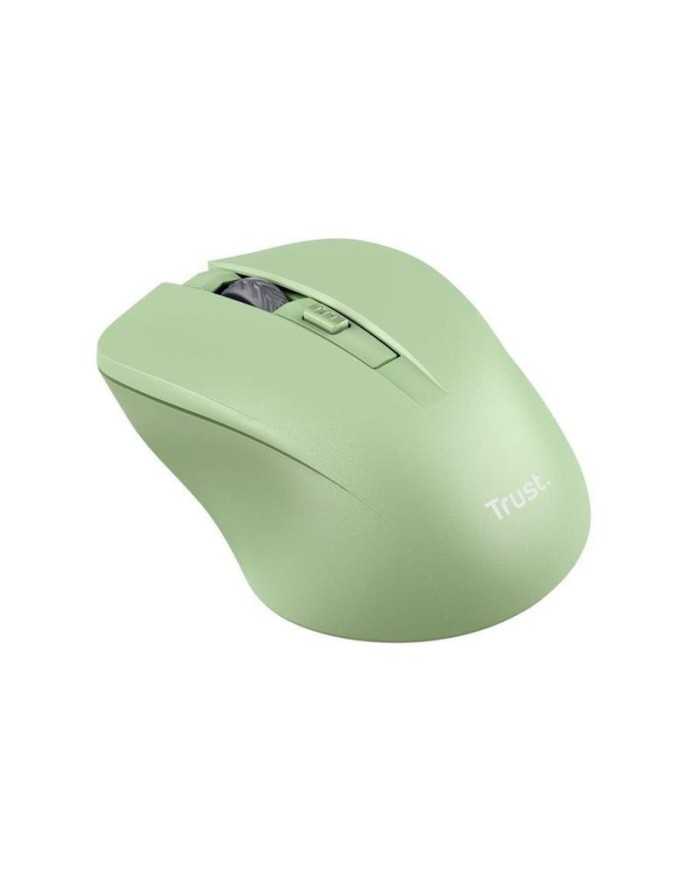 Cómodo ratón inalámbrico Mydo Silent Click de Trust con modernas teclas silenciosas, en color verde.