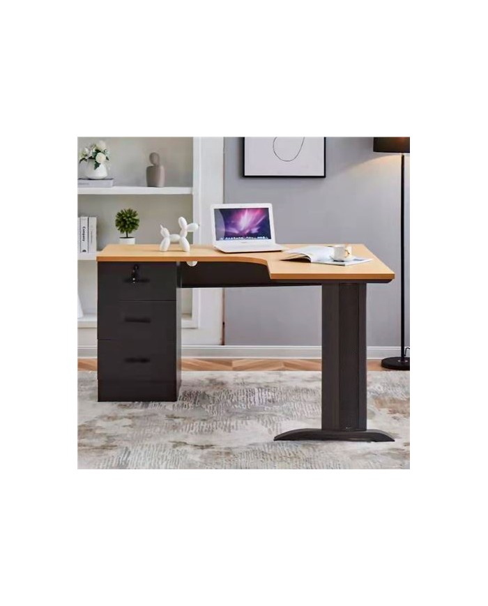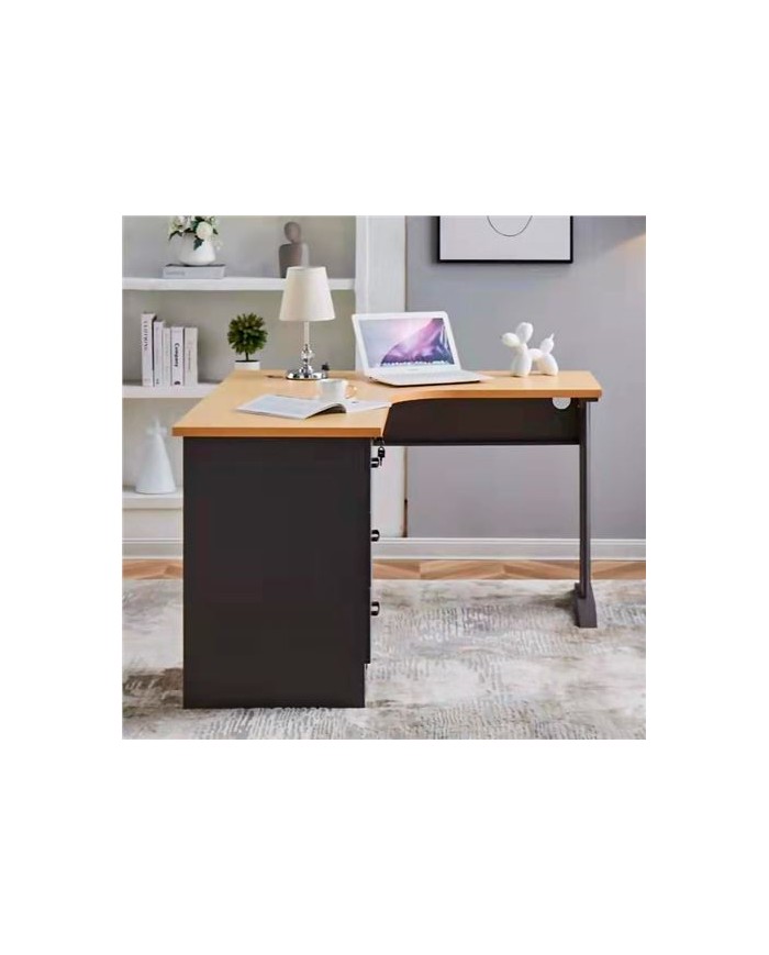 Material: madera y acero Dimensiones: 140x120x75 cm Grosor del tablero: 25mm de alta resistencia. Fcil montaje Agujeros pasacables. Incluye cajonera con 3 cajones para almacenamiento. L izquierda ------------------------------------------------------------------------ ATENCIN: Pequeos araazos o marcas
