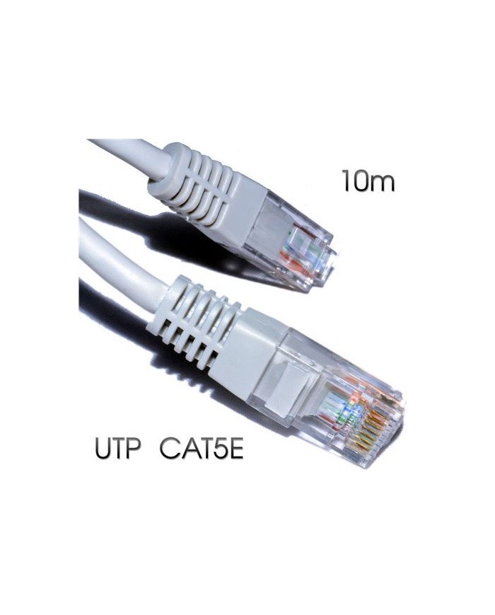 Cable de red latiguillo Categoría 5E UTP con conector tipo RJ45 en ambos extremos. Longitud 10 Metros Color Gris Claro