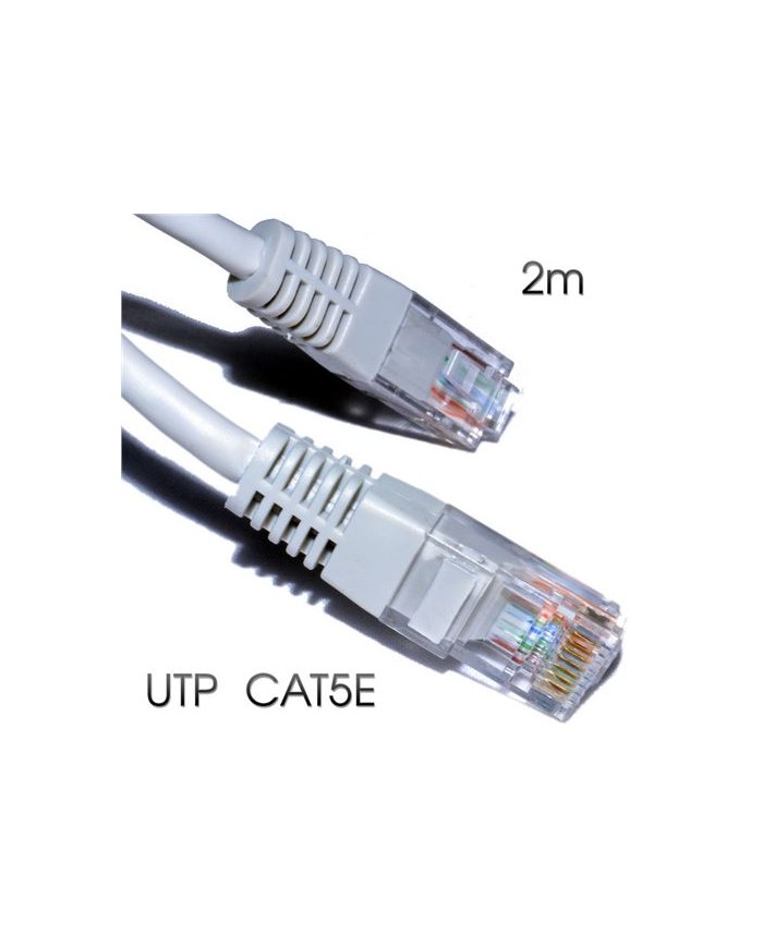 Cable de red latiguillo Categoría 5E UTP con conector tipo RJ45 en ambos extremos. Longitud 2 Metros Color Gris Claro