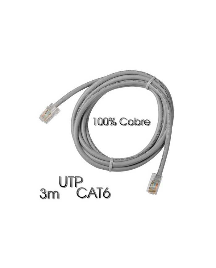 Cable de red latiguillo Categoría 6 UTP con conector tipo RJ45 en ambos extremos. Material 100% cobre Longitud 3 Metros Color Gris Claro