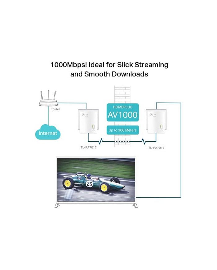 HOMEPLUG AV2 STANDARD - Velocidades de transferencia de datos de alta velocidad de hasta 1000 mbps, que respaldan todas sus necesidades en lneaPUERTO GIGABIT - Proporciona redes cableadas seguras para computadoras de escritorio, televisores inteligentes o consolas de juegosPLUG & PLAY - Permite la configuracin de su red powerline en minutos, para que pueda disfrutar de conexiones rpidas, inalmbricas e inalmbricas de inmediatoAHORRO DE ENERGA - Patentada modo de ahorro reduce automticamente el consumo de energa hasta en un 85%ATENCIN - Habr una disminucin de la seal con la red de transferencia de lnea elctrica, AV1000 no alcanzar 1000Mbps