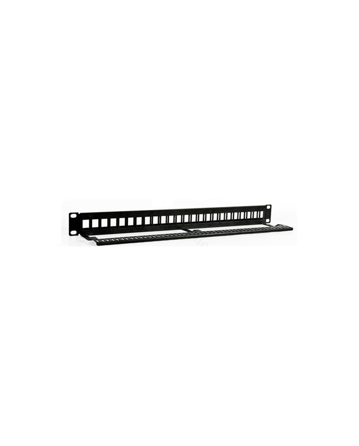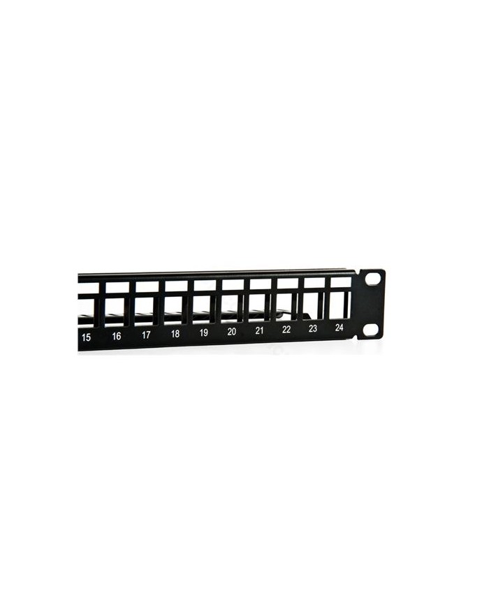 Patch panel 24 conectores para ancho de perfil estndar de 19" vacio, para insercin de conectores tipo Keystone y con bandeja trasera para enrutado de los cables.Enracable 19" en 1U de altura. Capacidad para 24 conectores Cat.5 o Cat.6 Fabricado en acero. Acabado en pintura color negro granulado fosfrica antioxidante.